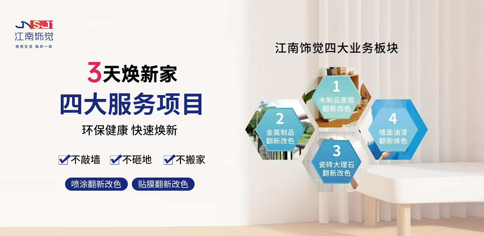 品牌介紹BRAND INTRODUCTION江南飾覺(jué)家居煥新連鎖品牌誕生于2023年,由浙江家居修護(hù)行業(yè)優(yōu)秀一眾人士共同創(chuàng)建,總部坐落于浙江溫州,是一家專業(yè)致力于家居煥新改造連鎖品牌,老房陳舊裝修家居煥新、省錢、省心、快捷、實(shí)現(xiàn)煥新家,為消費(fèi)者打造高···
